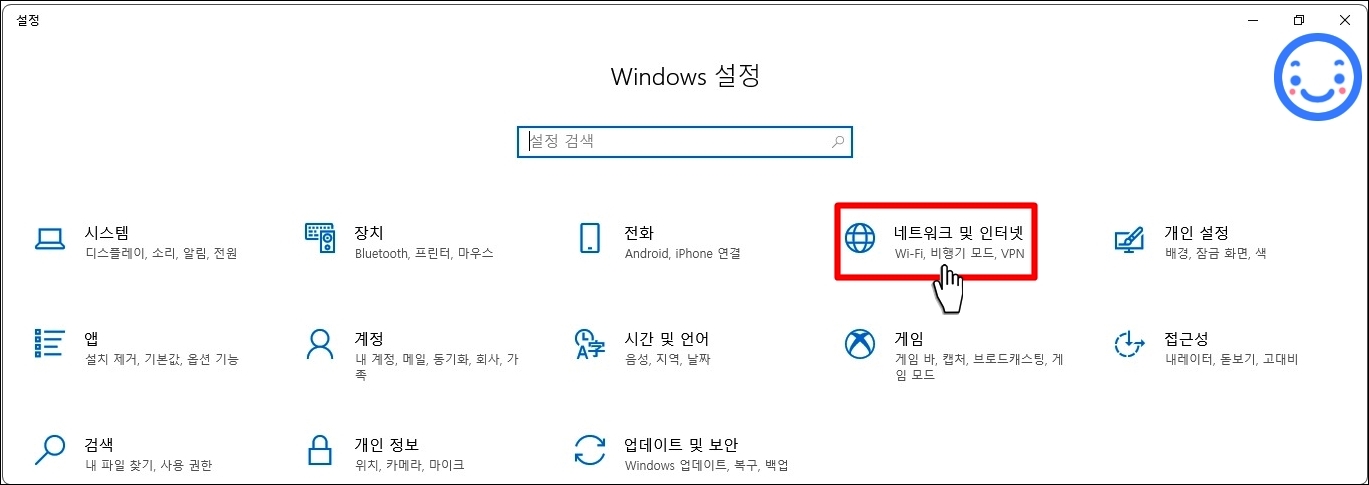이 방법은 컴퓨터 인터넷이 무선으로 연결됐을 경우에만 해당되는 방법입니다. 사용자의 PC나 노트북이 유선으로 연결이 되어 있다면 비밀번호가 필요가 필요 없기 때문에 해당 방법으로는 확인할 수가 없습니다. 윈도우키+I키를 동시에 눌러서 Windows 설정에 접속하여 네트워크 및 인터넷 설정을 클릭해봅니다.