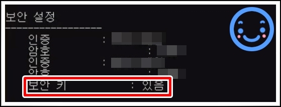 자신이 사용하는 무선 인터넷 이름을 wow라고 가정해본다면, 'netsh wlan show profiles admin' 이렇게 profiles 뒤에 한 칸 띄우고 admin를 입력하시고 엔터를 누르면 여러 가지가 나오는데 그중에 보안 설정에 보시면 보안 키: 있음이라고 뜨실 겁니다. 이게 뭐냐면 보안이 되고 있다는 뜻입니다.