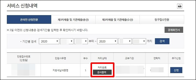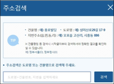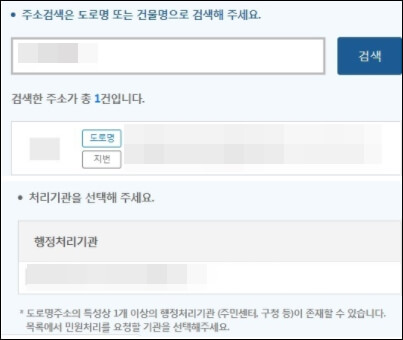 주소를 검색하시면 해당 사업자나 주소를 관할하는 행정 처리기 관리 자동으로 나오게 됩니다.