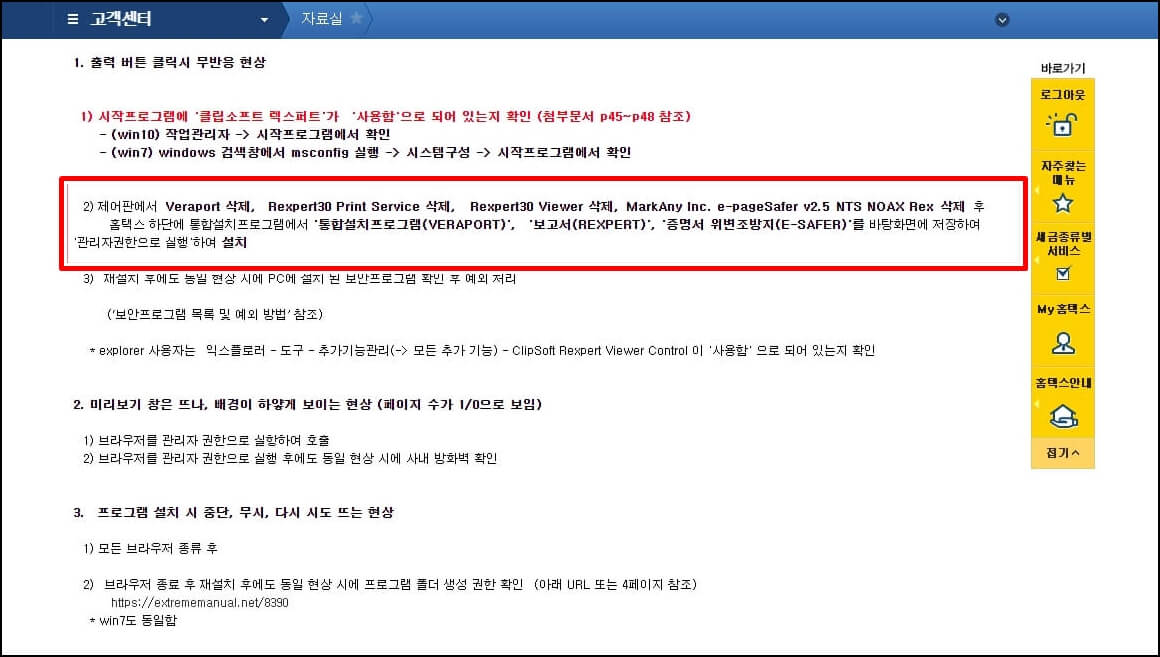 출력 버튼 클릭 시 무반응 현상에 대해서는 3가지의 방법을 제시합니다. 여러 가지 방법이 있는데 저는 제어판에서 프로그램 설치 삭제를 한번 해보도록 하겠습니다.