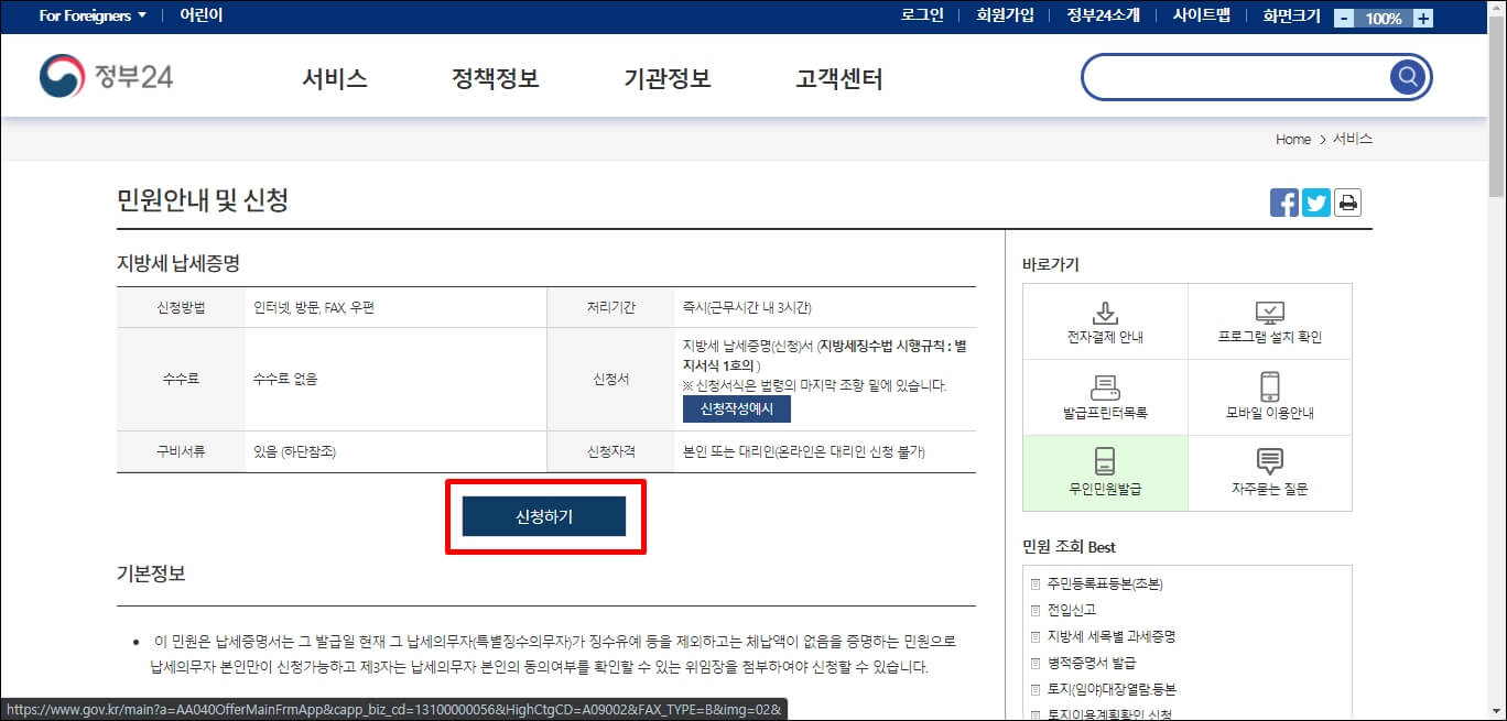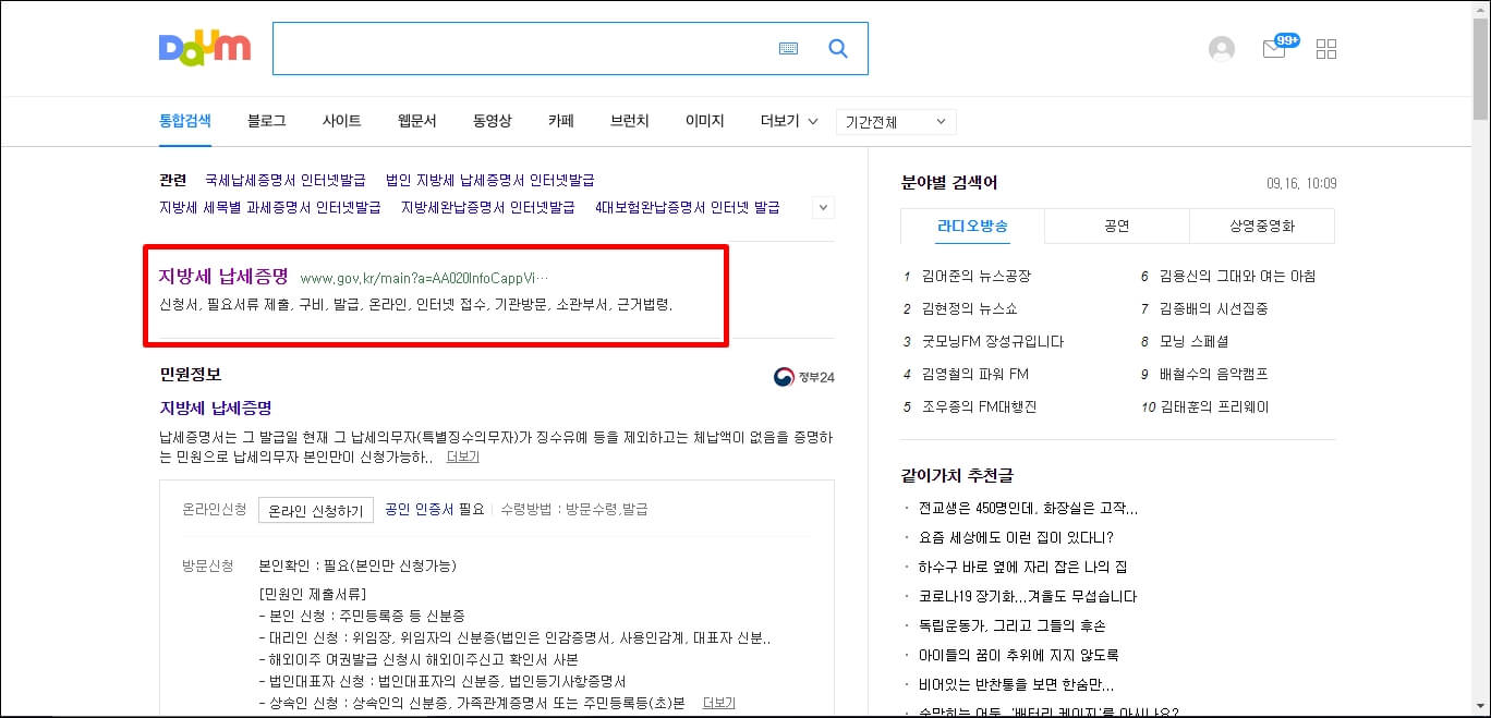 다음 검색엔진에서 지방세 납세증명을 입력하시고 해당 사이트로 접속해 줍니다.