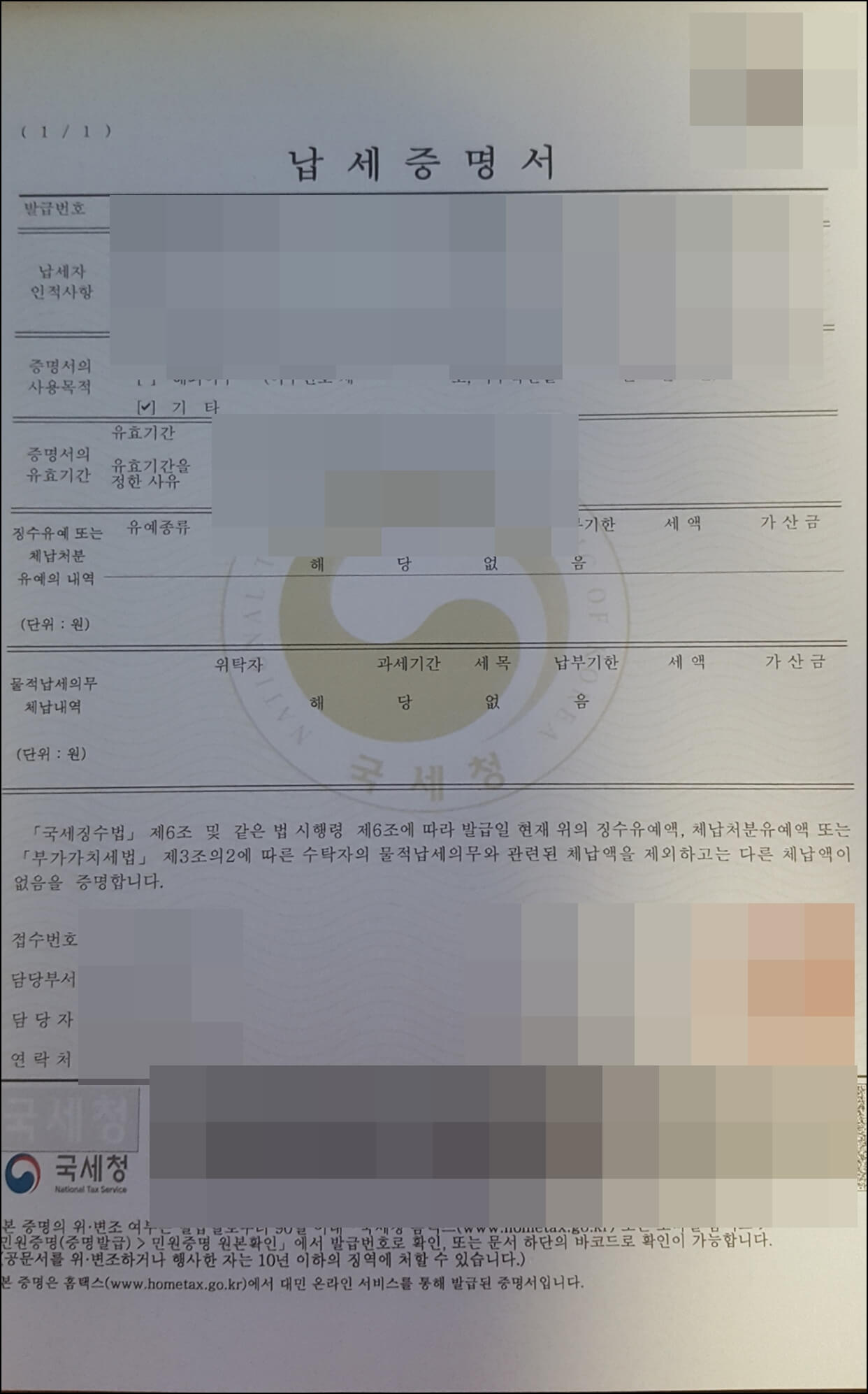 오늘은 홈택스와 정부 24에서 납세증명서를 발급받는 방법에 대해 알아보겠습니다. 납세증명서는 다른 말로 국세 완납증명서라고 불립니다. 납세증명서는 현재 체납된 국세가 없다는 사실을 증명하는 증명하는 서류로써(체납처분 유예액, 징수유예액은 제외) 국세 완납증명서가 가장 많이 쓰이는 경우는 ▲전세계약, ▲대출, ▲대출 연장할 때 사용될 수 있습니다. 나의 신용을 증명하는 공문서로써 은행에서도 많이 요구하는 문서 이기도 하지요