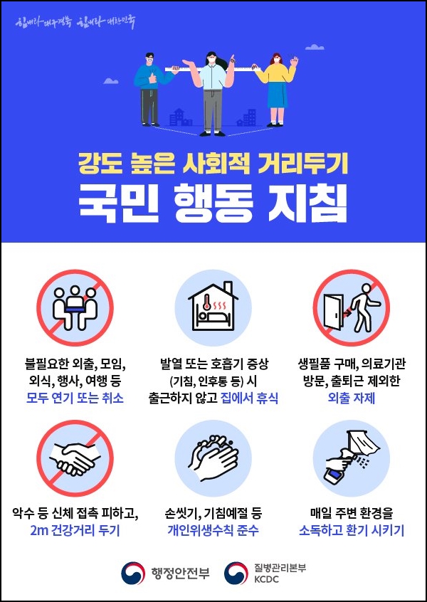 5월 6일부터 시작된 생활 속 거리두기는 지금까지 약 3개월 간 지속되고 있는데요. 많은 사람들의 협조와 도움이 요구되는 정책인 만큼 개인 방역에 만전을 기해 주시고 정부가 내리는 지침을 잘 지켜주셔서 개인의 건강과 가족의 건강을 함께 지켜나가 주시길 바랍니다.