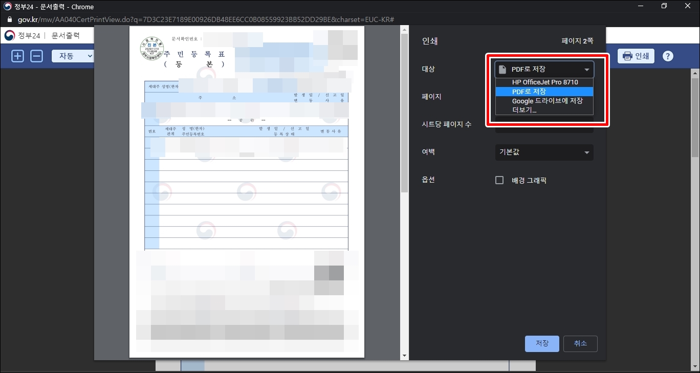 집에 프린터가 없으신 분들은 PDF로 저장하시고 USB에 옮기시거나 구글 드라이브에 저장해 놓으셨다가 필요하실 때 사용하시면 되겠습니다.