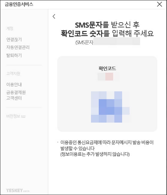 그러면 모니터 화면에 확인 코드가 뜨면서 문자가 오는데 답장을 할 때 확인 코드 숫자 2자리를 입력해서 답장을 보내면 아래와 같이 금융인증서 발급이 됩니다.