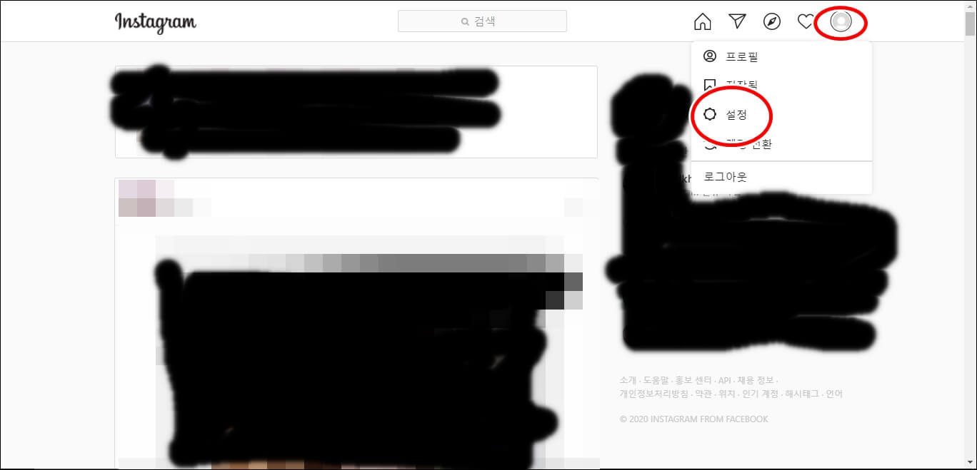 인스타그램 탈퇴방법은 의외로 간단합니다. 먼저 인스타그램에 접속하신 후에 상단 프로필을 클릭하시고 설정을 클릭해줍니다.