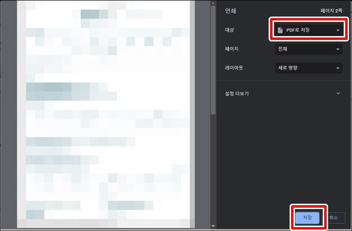 대상에서 PDF로 저장을 선택하시고 저장을 누르면 PDF 형식의 파일로 컴퓨터에 저장이 되며 이를 USB나 메일을 통해 스마트폰으로 옮기시면 되겠습니다.