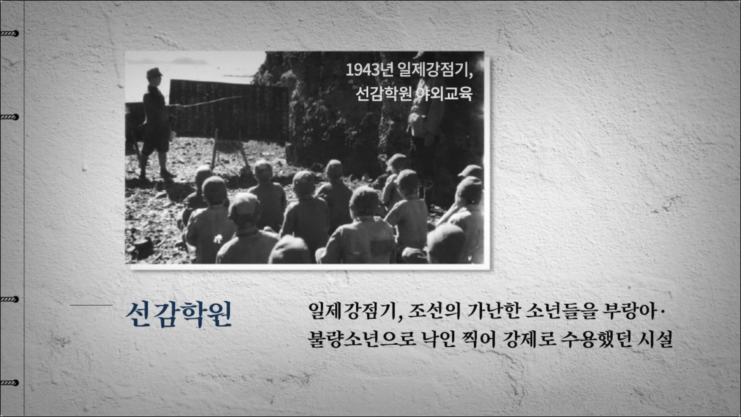 아이들을 강제적으로 수용시켜 인적자원으로 사용하려면 일본의 계획은 해방 이후에도 군사정권에 그대로 대물림되어 인권유린이 그치지 않았던 선감도... 삼청교육대, 서산 개척단, 형제복지원 같은 모든 인권유린 시설은 모두 일제가 만들어낸 선감학원과 같은 시설들이다. 그렇다면 도대체 누가 이런 끔찍한 선감학원을 설립한 것일까???
