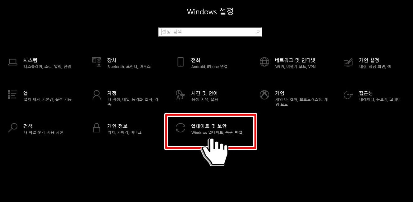 시디키를 구매하셨다면 윈도우키+i키를 누르고 업데이트 및 보안에 접속합니다.