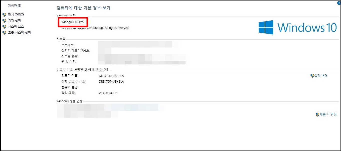 내 컴퓨터 윈도우 버전 확인 방법은 Windows+Pausebreak를 동시에 누르면 윈도우 버전을 확인하실 수 있습니다