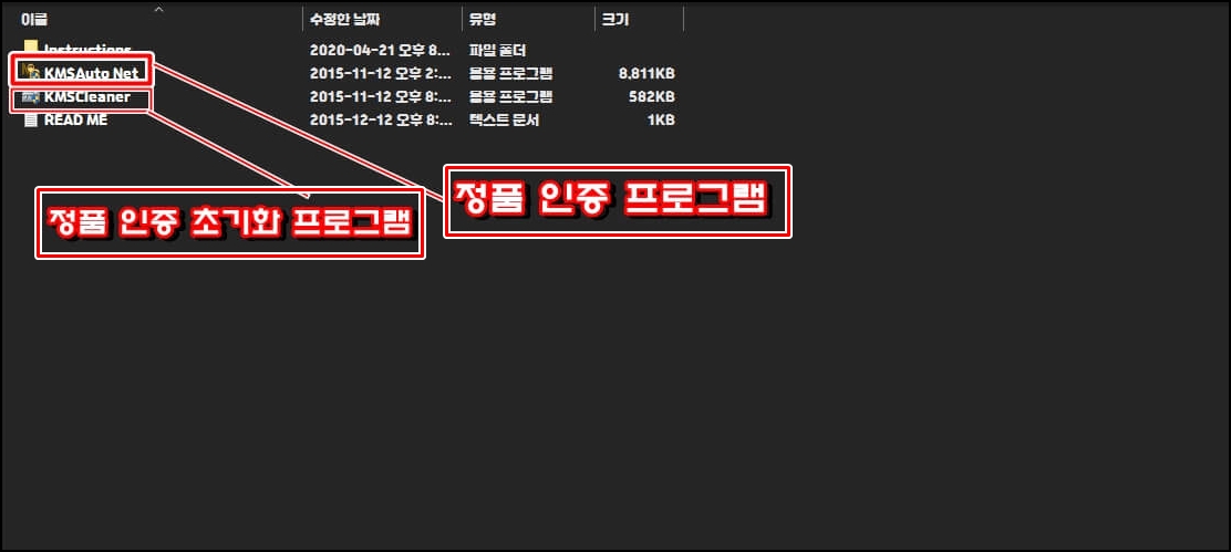 알집 비밀번호는 issue를 입력하시고 푸시면 됩니다. 알집을 푸셨으면 2개의 프로그램이 나오는데요... KMSAuto Net는 정품 인증 프로그램이고 KMSCleaner는 정품 인증을 초기화하는 프로그램입니다. KMSAuto Net 정품 인증 프로그램을 더블클릭해줍니다.